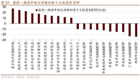 上周(1/5-1/9)股票型ETF净申购规模最高的为易方达沪深300非银ETF(+27.0亿份),鹏华中证细分化工产业主题ETF(+24.4亿份)净申购规模次之;净赎回规模最高的为鹏华中证酒ETF(-24.0亿份),广发中证A500ETF(-23.0亿份)次之。