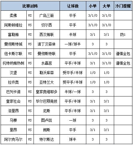 赢输彩第26035期主如若由1场亚冠+5场英超+1场德甲+1场意大利杯+1场西甲+1场西班牙杯+3场法国杯+1场荷兰杯的比赛构成,本期竞猜难度如故较大的,贪污较多的比赛场次只好2场,然而部分场次的贪污数据不算太多,而贪污不及的比赛场次如故较多的,且还有部分半球或半一贪污的比赛场次,机构给出的信心如故不及,同期,本期有较多的军队都是在比拟密集的赛程中作战,全体来看,部分军队的体能如故需要多属意的,本期的竞猜难度较大,需要多防卫。底下,带来本期的大势分析: