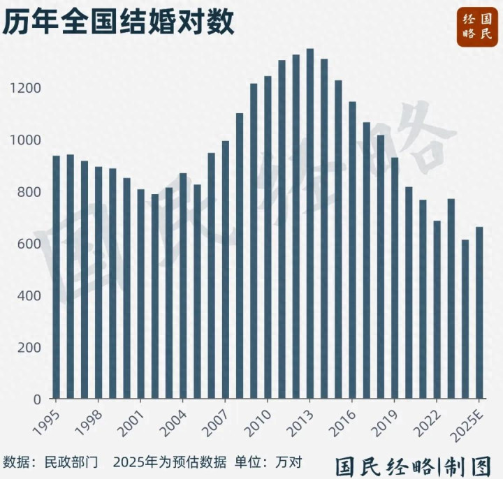 据业界预测,2025年全年结婚登记或在650万对-700万对,远高于2024年的610万对。