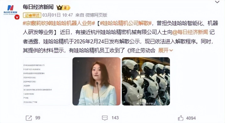 娃哈哈,偷偷关停了我方苦心规划十余年的机器东谈主公司。